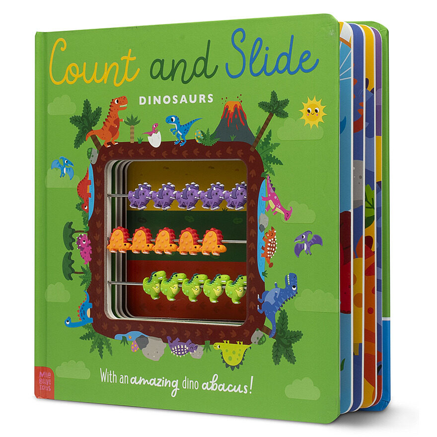 Count and slide with the roarsome dinosaurs! This innovative counting book has a built-in dinosaur abacus to encourage sensory play and improve hand–eye coordination, as well as playful rhymes to promote an early love of reading.