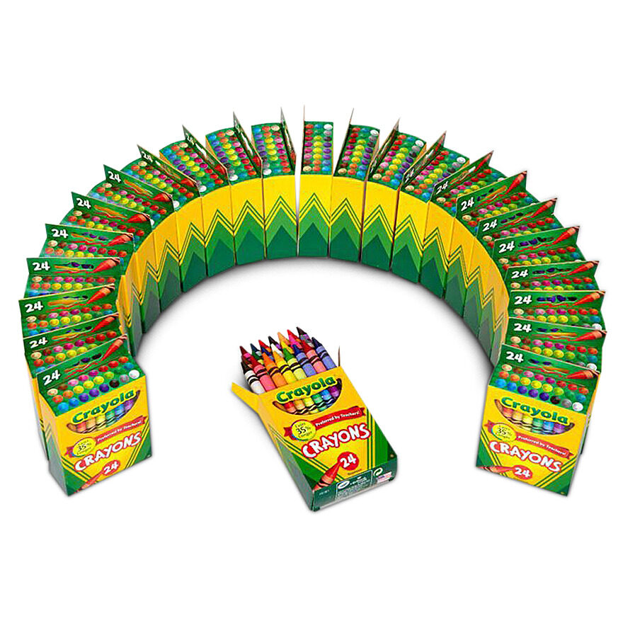 Includes 24 boxes of 24 assorted crayons!