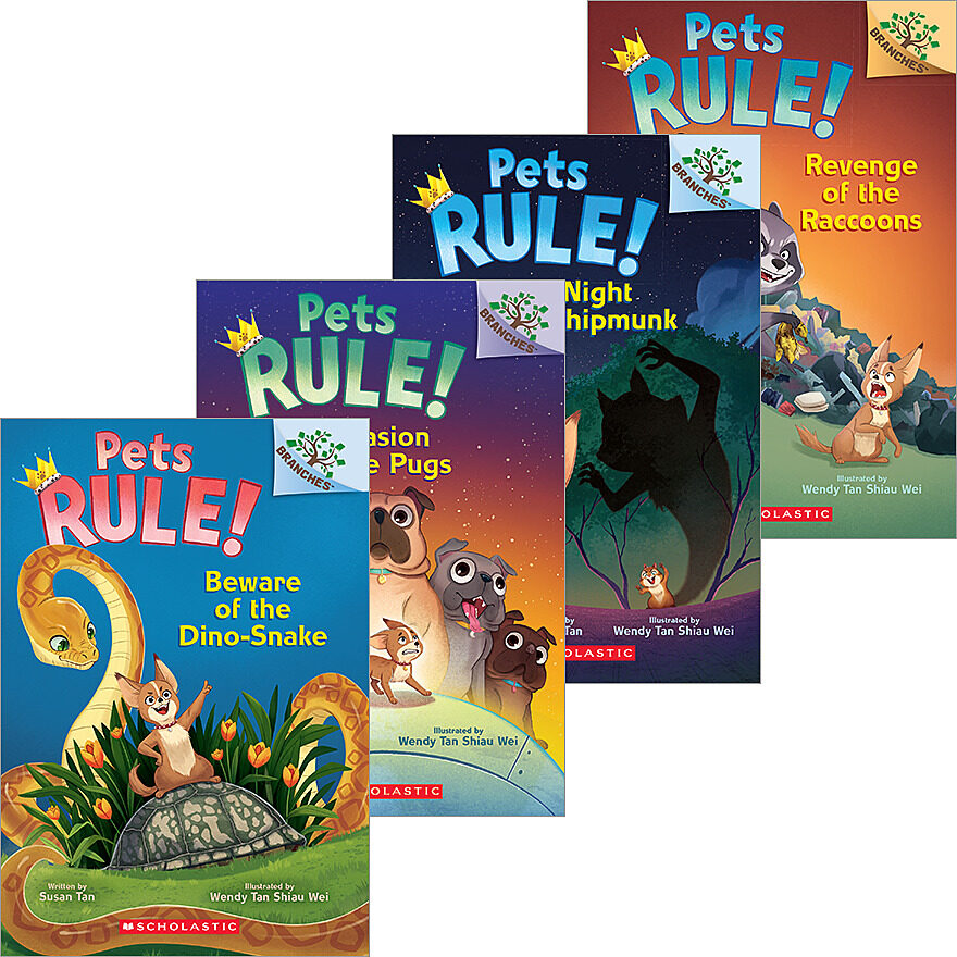 Pugs, raccoons, and snakes! Oh my! Join Ember and the rest of the Chin family pets as they go up against some of their toughest challenges yet. This four book pack of the Pets Rule Branches series is great for growing readers, with humor and heart Ember and the pets will save their neighborhood.